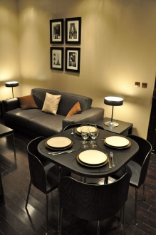 A sala de estar: um sofá-cama para dormir uma pessoa, uma mesa de café, uma TV a cabo HD, DVD, Wi-Fi / Conexão banda larga à Internet.
