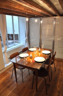 A cozinha aberta para a sala, equipada com microondas, fogão, frigorífico, exaustor, máquina de café, chaleira, torradeira, d uma máquina de lavar roupa e tudo o necessário para cozinhar. A mesa e quatro chaises.Pas máquina de lavar louça.