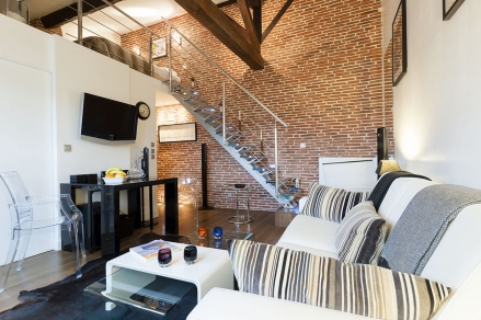 um loft atingido por uma escada que oferece uma cama de casal (140 * 200)