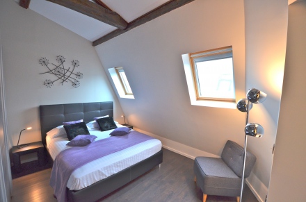 O quarto: é equipado com um 160 centímetros cama de 2 lugares, um grande armário.